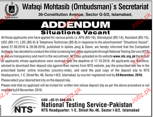 Latest Government Department Admin Clerical Posts Islamabad 2025