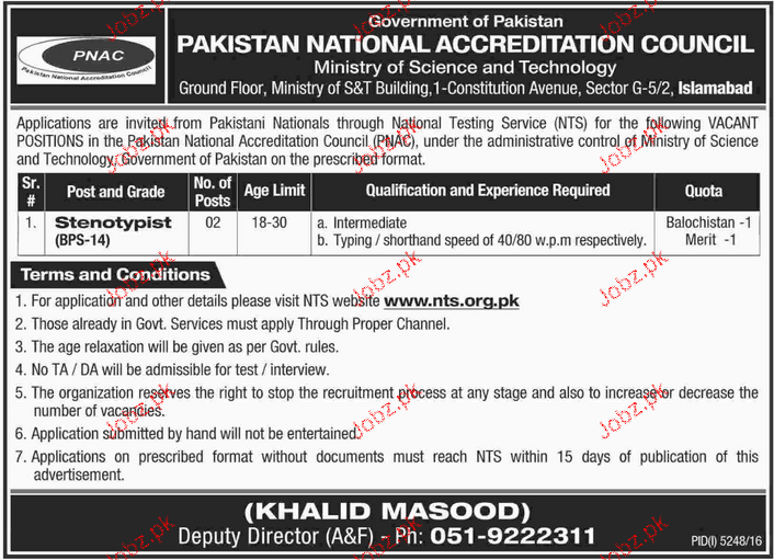 Apply as per details in job advertisement. Login to view further details of how to apply via https://www.jobz.pk online.