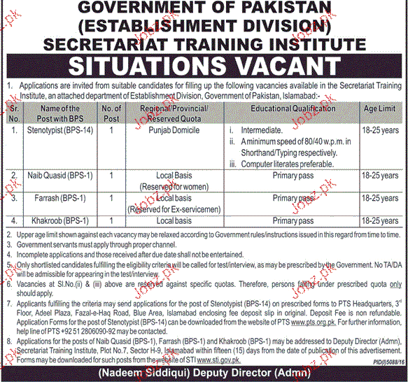 Stenotypists, Naib Qasid, Mali And Drivers Job Opportunity