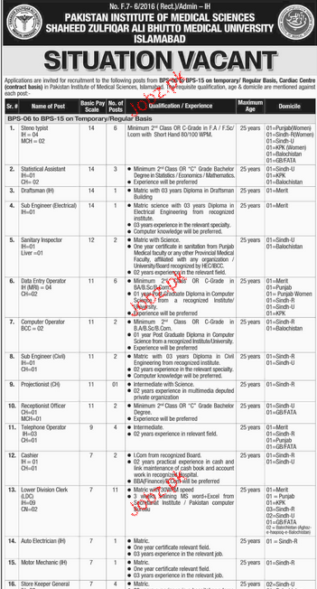 Apply as per details in job advertisement. Login to view further details of how to apply via https://www.jobz.pk online.