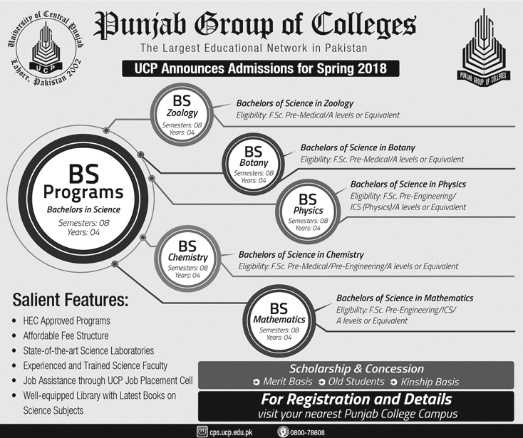 STEP Punjab Group of Colleges Admission in BS Programs Bachelor in Sciences, BS Bology, BS Botony, BS Physics, BS Chemistry and BS Program Bachelor in Sciences in Lahore. Read newspaper ad for exact details.