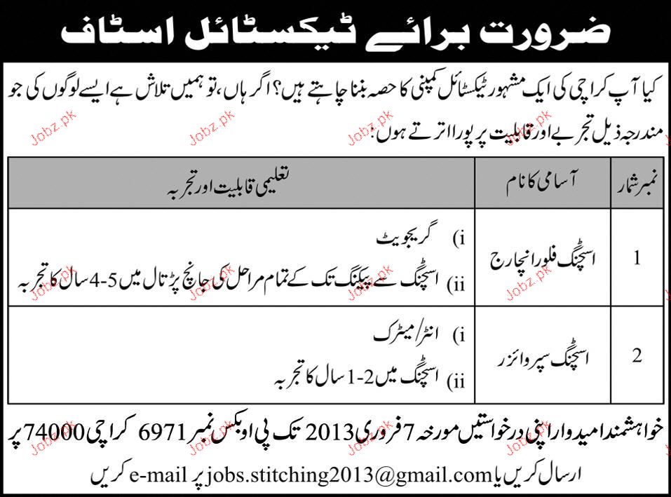 Apply as per details in job advertisement. Login to view further details of how to apply via https://www.jobz.pk online.