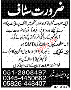 Apply as per details in job advertisement. Login to view further details of how to apply via https://www.jobz.pk online.