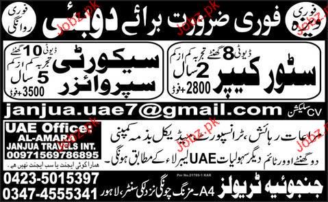 Store Keepers and Security Supervisors Job Opportunity