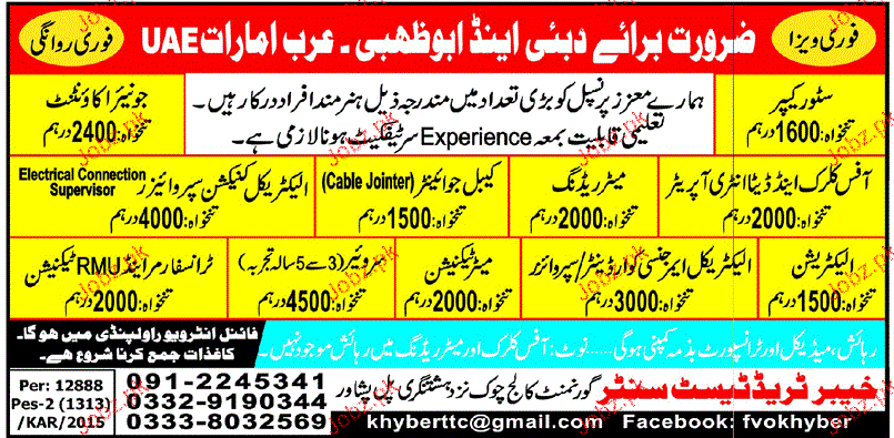 Store Keepers, Electricians, Junior Accountant Wanted