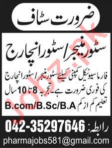 Store Manager & Store Incharge Jobs 2019 In Lahore