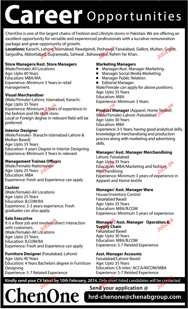 Apply as per details in job advertisement. Login to view further details of how to apply via https://www.jobz.pk online.