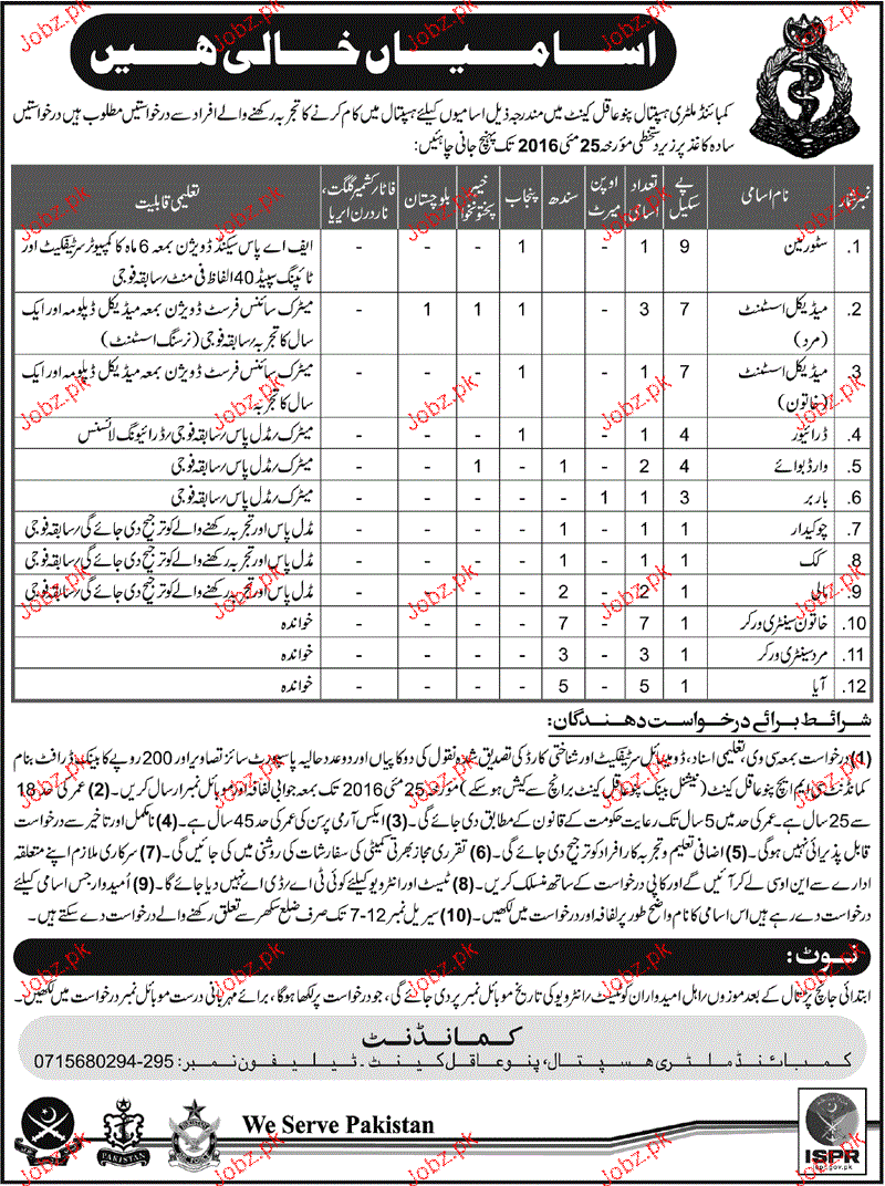 Storeman, Medical Assistants, Drivers, Ward Boys Job In CMH