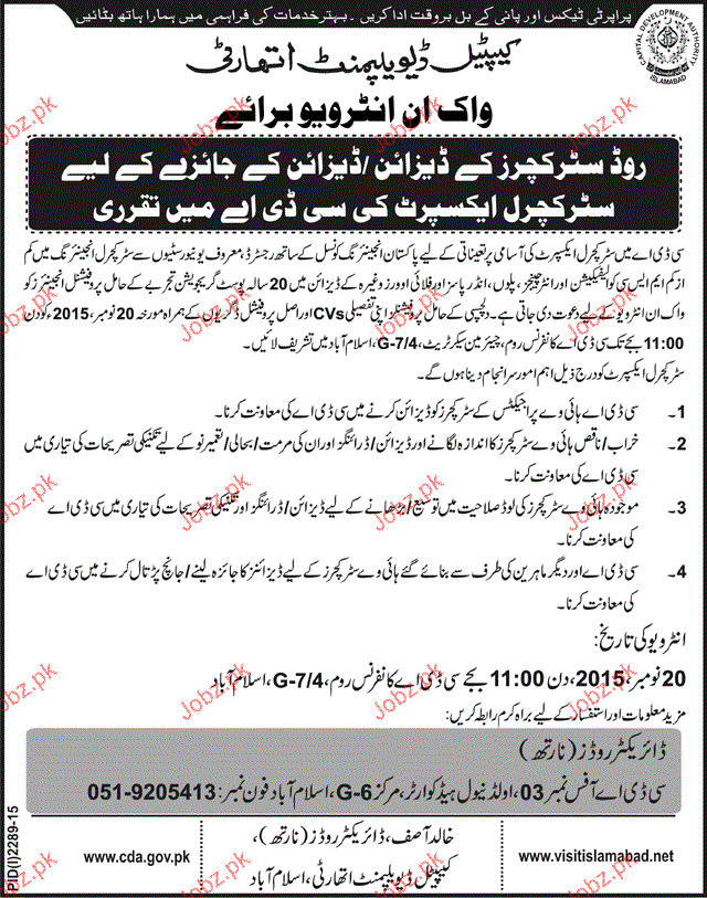 Latest Capital Development Authority CDA Design Posts Islamabad 2025