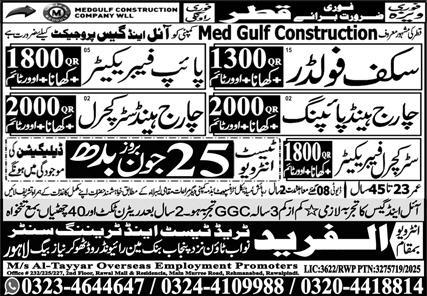 Apply at Al Fareed Trade Test and Technical Training Center latest Overseas jobs in Construction and departments before closing date which is around June 25, 2025 or as per closing date in newspaper ad. Read complete ad online to know how to apply on latest Al Fareed Trade Test and Technical Training Center job opportunities. Salary varies from 155000.