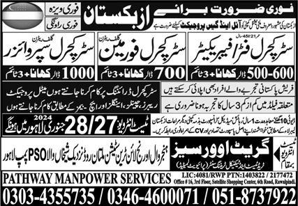 Pathway Manpower Services is looking for candidates for following posts as per job advertisement published in daily Express Newspaper of January 27, 2024 for location Tashkent, tashkent Uzbekistan: