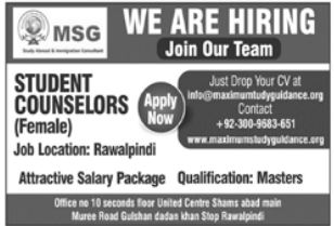 Apply as per details in job advertisement. Login to view further details of how to apply via https://www.jobz.pk online.