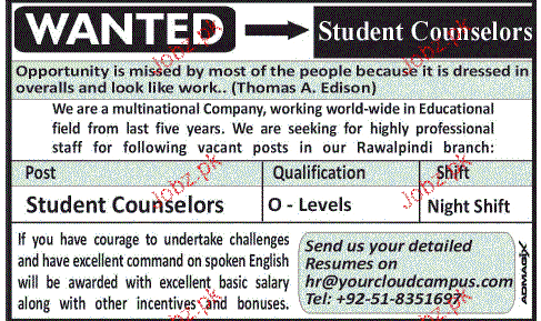 Apply as per details in job advertisement. Login to view further details of how to apply via https://www.jobz.pk online.