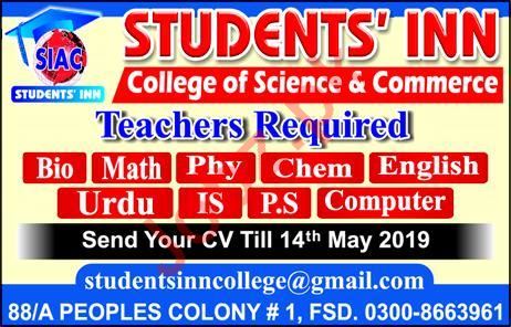 Vacancies in Student Inn College of Science & Commerce Advertisement May 2019