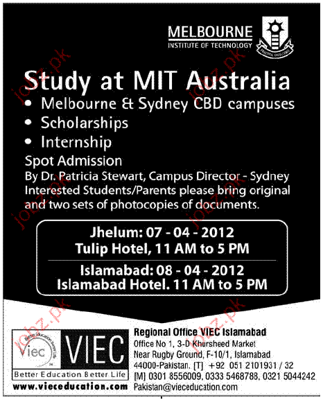 Study at MIT Australia Read newspaper ad for exact details.