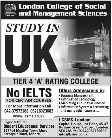 Study in UK London College Of Social and Management Sciences Read newspaper ad for exact details.