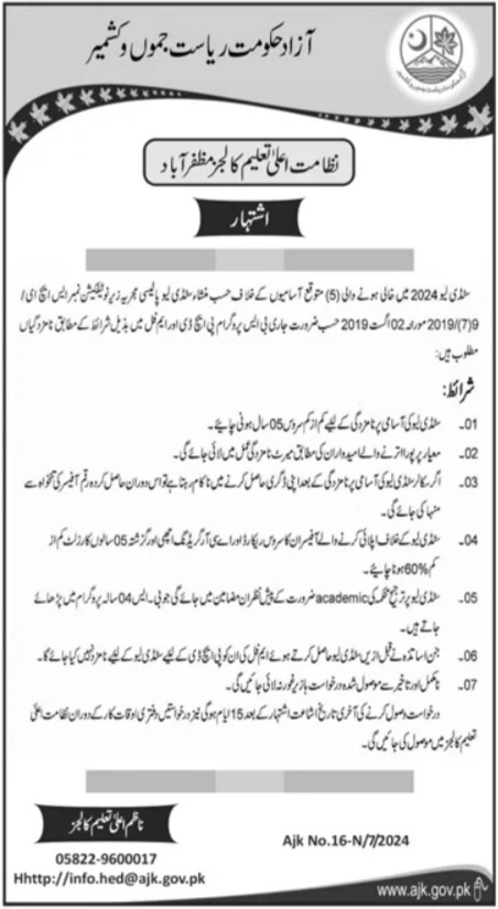 Study Leave Jobs At Directorate Of Education Colleges AJK