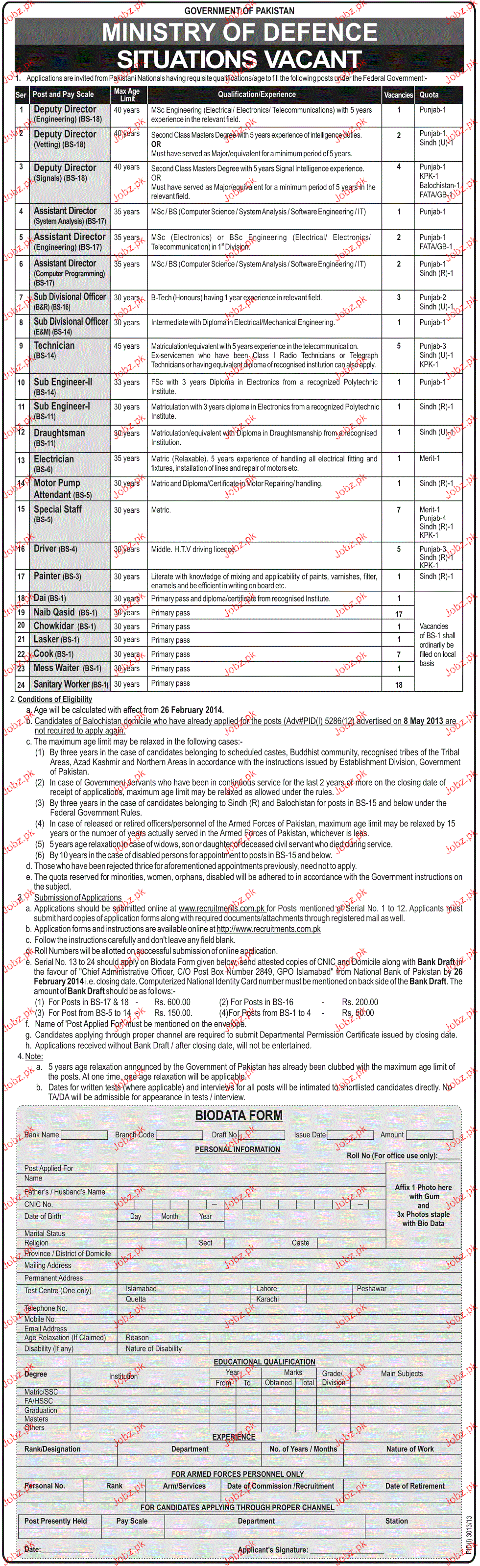 Apply as per details in job advertisement. Login to view further details of how to apply via https://www.jobz.pk online.