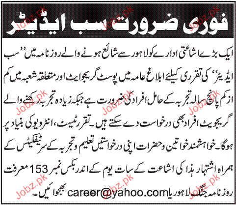 Apply as per details in job advertisement. Login to view further details of how to apply via https://www.jobz.pk online.