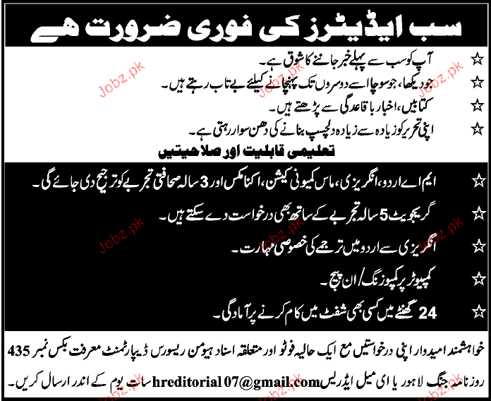 Sub Editors Job Opportunity