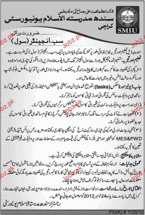 Latest Government Engineering Posts Karachi 2025