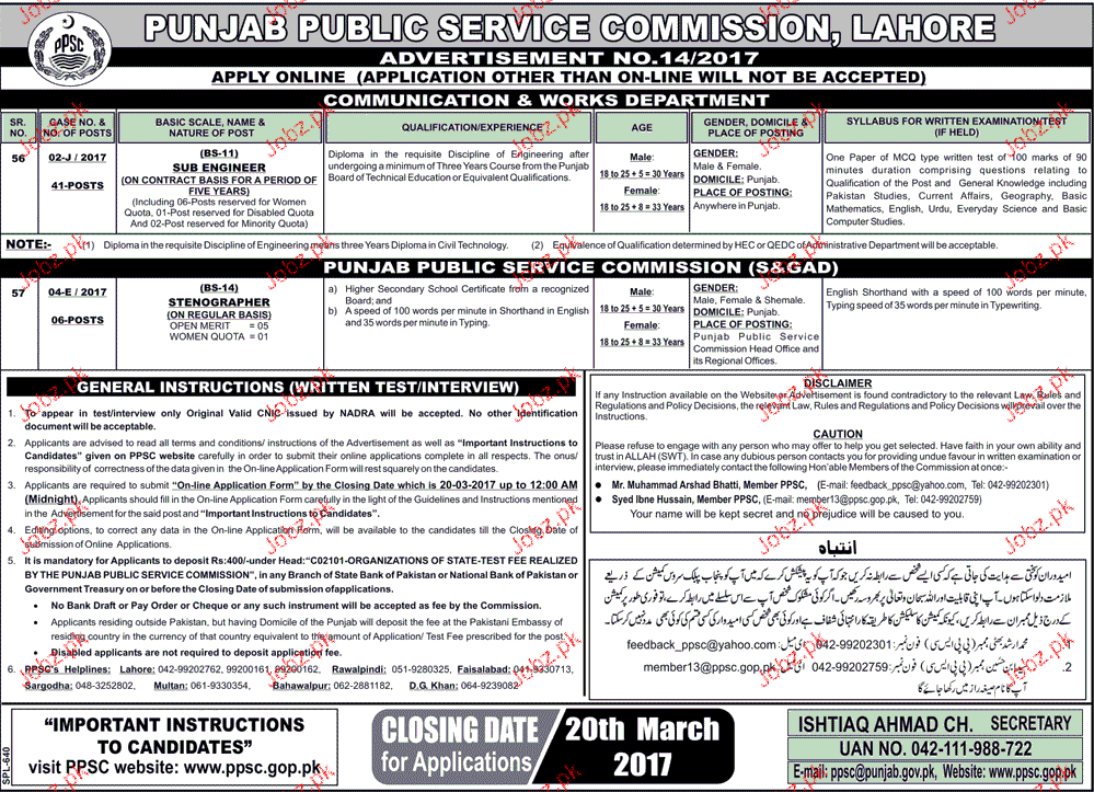 How to Apply on Punjab Public Service Commission PPSC Job Advertisement