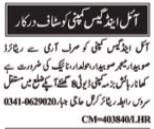 Apply as per details in job advertisement. Login to view further details of how to apply via https://www.jobz.pk online.