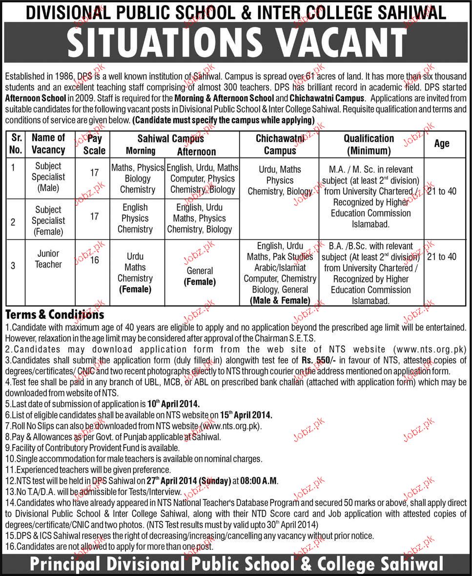 Subject Specialist And Junior Teachers Job In Divisional Pub