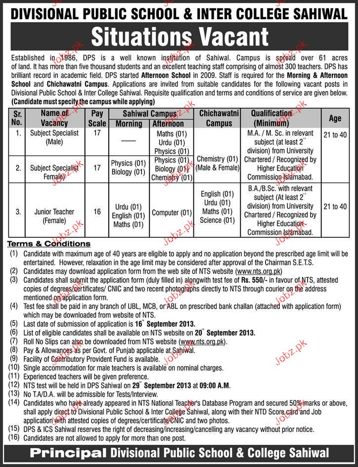 Apply as per details in job advertisement. Login to view further details of how to apply via https://www.jobz.pk online.