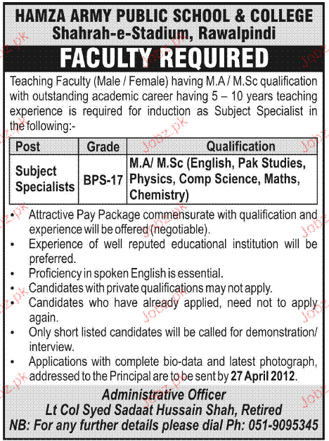Latest Army Public School APS Teaching Posts Rawalpindi 2025