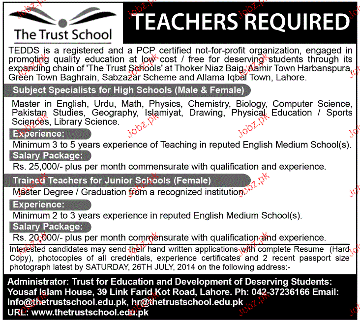 Apply as per details in job advertisement. Login to view further details of how to apply via https://www.jobz.pk online.