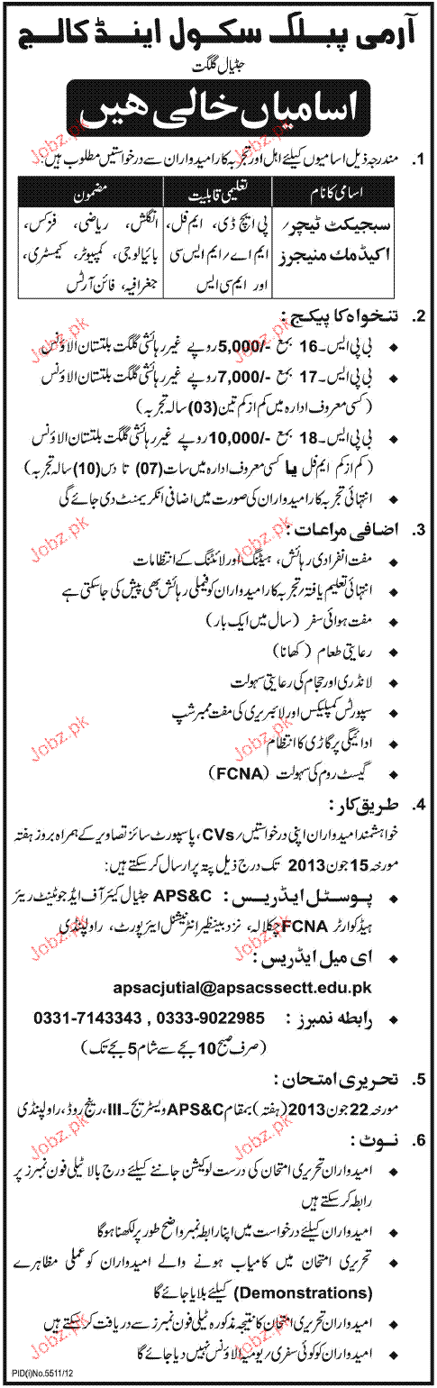 Latest Army Public School APS Teaching Posts Gilgit 2025