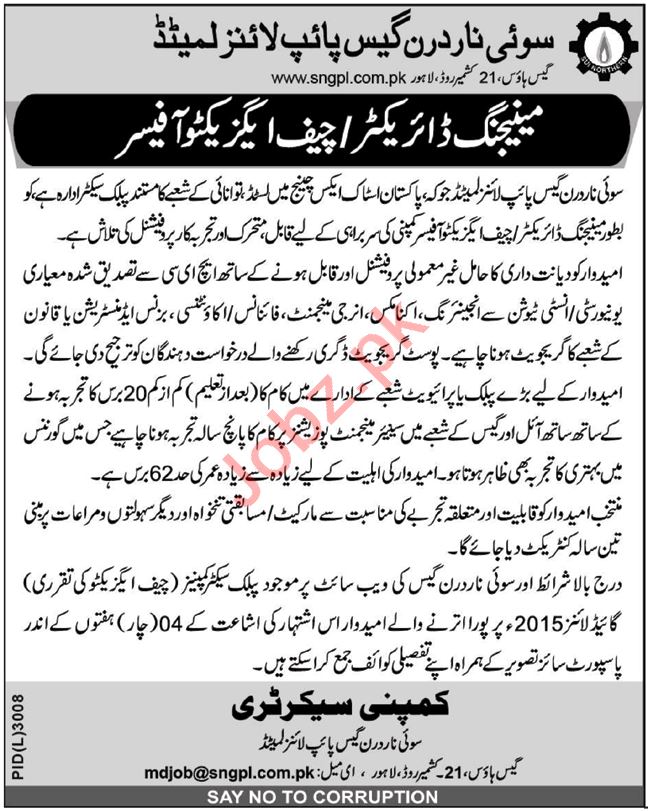 Latest Sui Northern Gas Pipelines Limited SNGPL Management Posts Lahore 2025