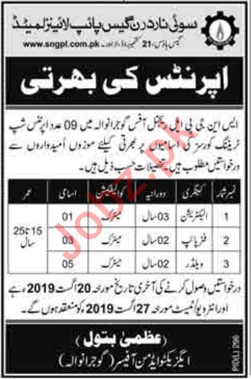 Sui Northern Gas Pipelines Limited SNGPL Gujranwala Jobs