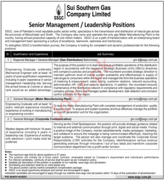 Latest Sui Southern Gas Company Limited SSGC Management Posts Karachi 2025