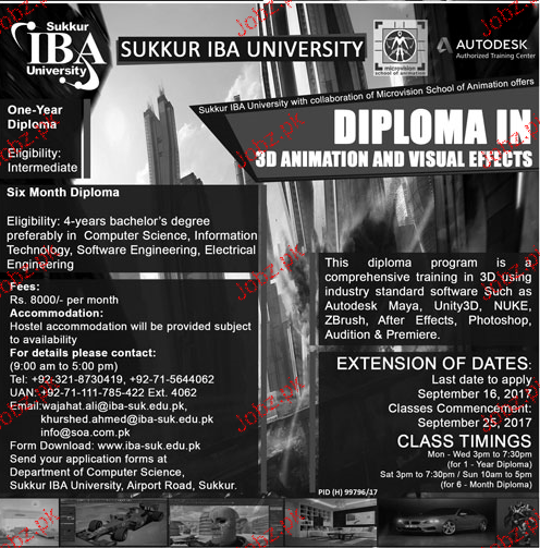 Sukkur IBA University Admission in Diploma in Sukkur. Read newspaper ad for exact details.