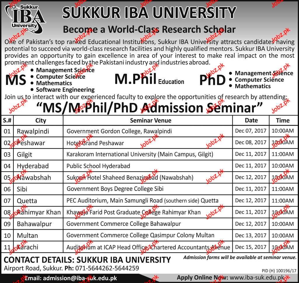 Sukkur IBA University Admission in MS Management Sciences, Computer Sciences, Maths, Software Engineering, and Mphill Education and Phd in Computer Sciences in Sukkur. Read newspaper ad for exact details.