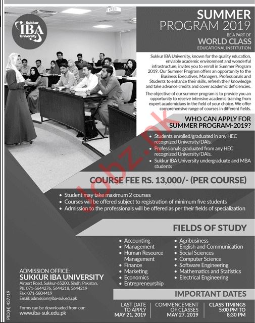 Sukkur Institute of Business Administration IBA University is offering admissions in Accounting Course, Agribusiness Course, Management Course, English Course, Communication Course, Human Resource Course, HR Course, Finance Course, Marketing Course, Economics Course, Electrical Engineer Course, Software Engineering Course, Social Sciences Course, Mathematics Course & Statistics Course. Read newspaper ad for exact details.