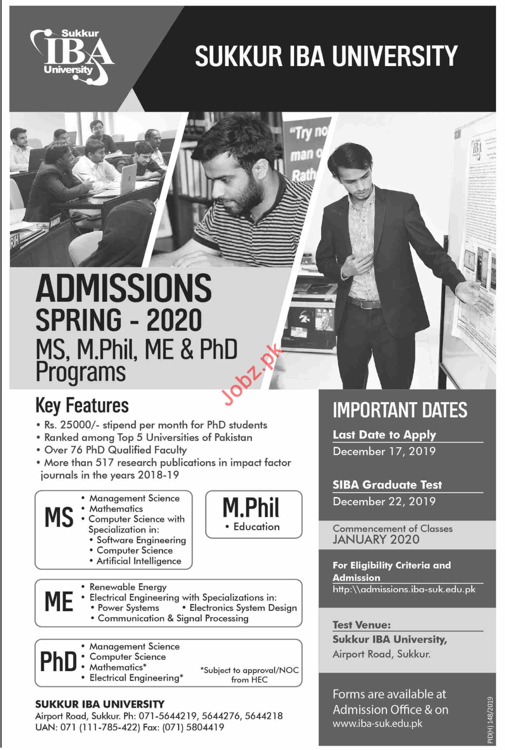 Sukkur IBA University has announced admission for the class of MS, M.Phill, ME, PhD in Sukkur. Interested student submit their admission form before last date. Admission Deadline is December 17th 2019. Read newspaper ad for exact details.