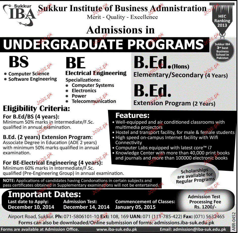 Sukkur Institute of Business Administration Admission in BS, BE and B.Ed in Sukkur, Read newspaper ad for exact details.