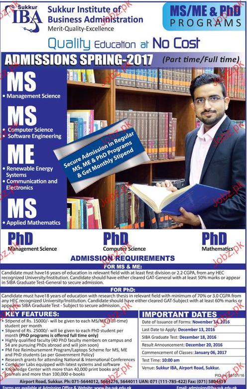 Sukkur Institute of Business Administration Admission in MS, ME and Phd in Lahore. Read newspaper ad for exact details.