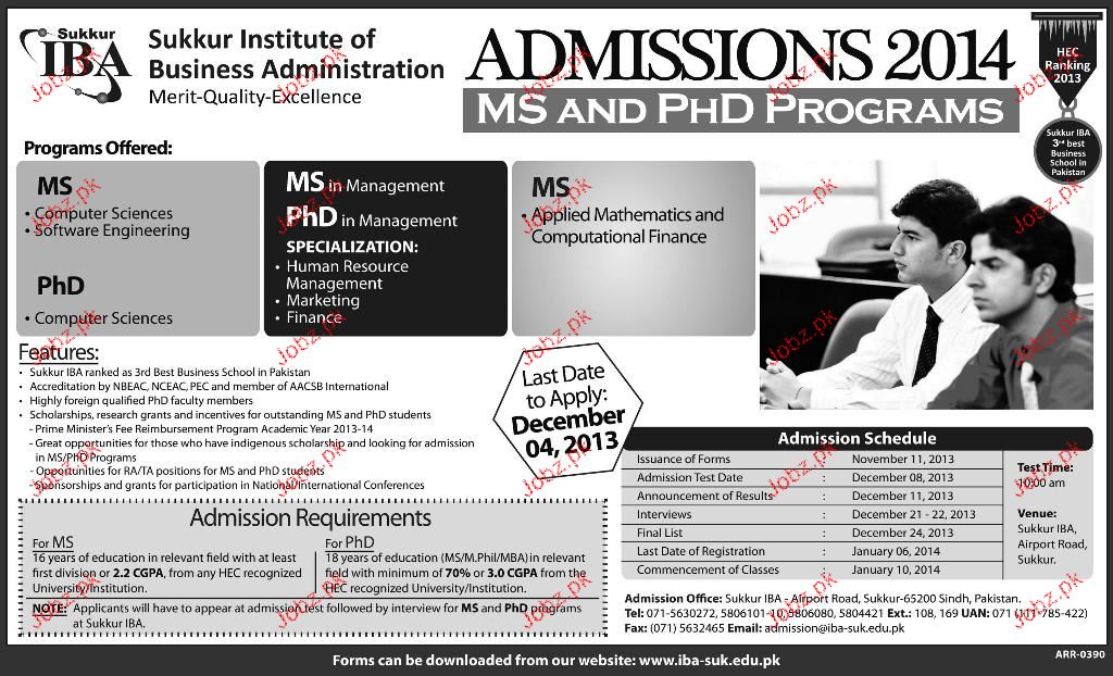 Sukkur Institute of Business Administration admission in MS and Phd in Sukkur Read newspaper ad for exact details.