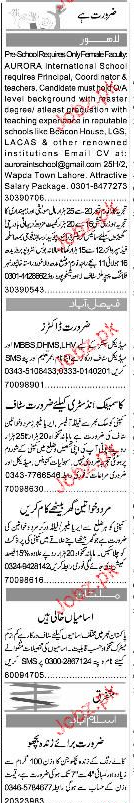 Sunday Express Classified Doctors, Field Officers Wanted