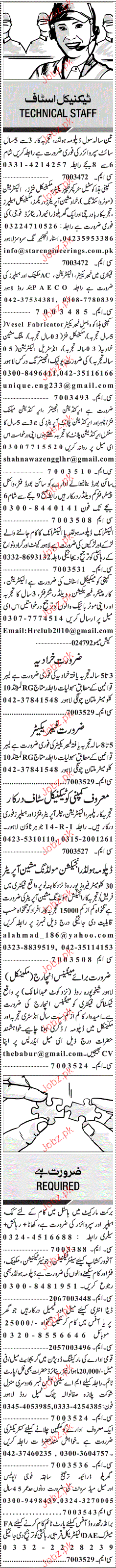 Sunday Jang Classifid Technical Staff are required in Lahore.