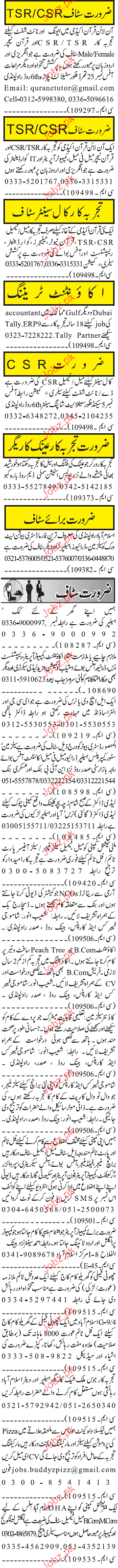 Sunday Jang Classified Accountant, Receptionist Wanted
