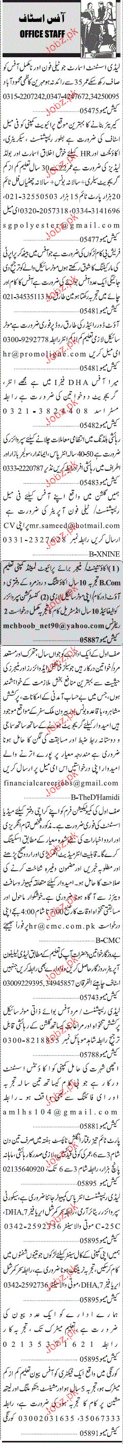 Sunday Jang Classified Assistant, Receptionist Wanted