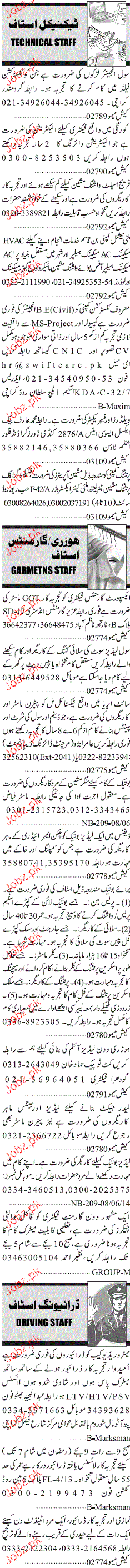 Sunday Jang Classified BE Engineers, Machine Operator Wanted