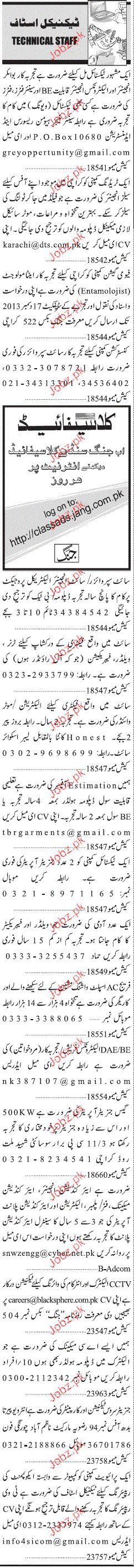 Sunday Jang Classified Boiler Engineers Job Opportunity