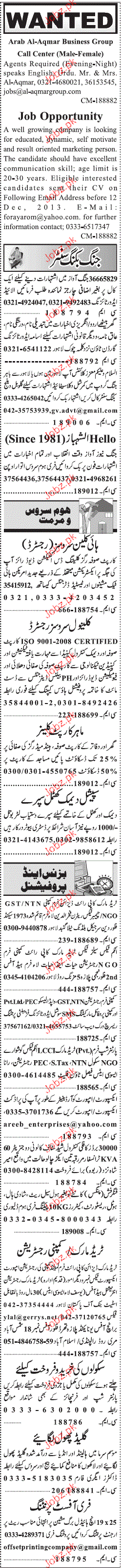 Sunday Jang Classified Business Professionals Wanted