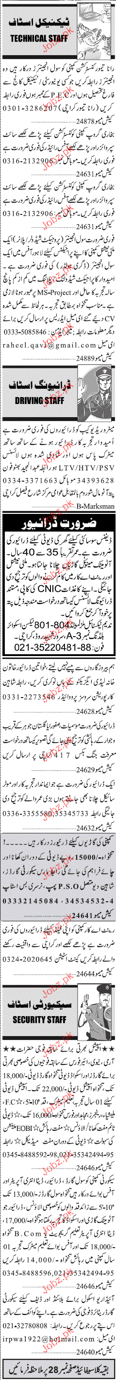 Sunday Jang Classified Civil Engineers, Drivers Wanted